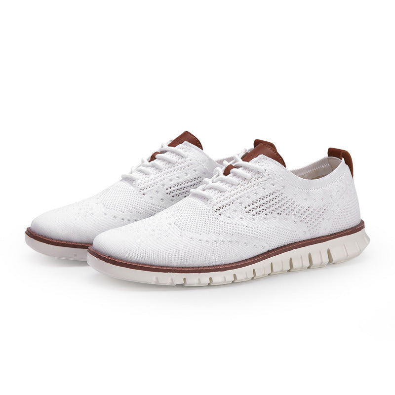 Experience the perfect fusion of classic Brogues styling and modern knitted technology with these innovative casual shoes. Featuring flying woven construction with traditional lace-up design, these breathable sneakers bring contemporary comfort to timeless Brock shoe aesthetics.